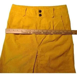*RARE FIND* The Gap 1969 Yellow Corduroy Button Front Slit Straight Pencil Skirt in XXS is a stylish and versatile piece for women's clothing. Made from cotton corduroy fabric, this high-rise skirt features a solid yellow color and a front slit with button accents. Perfect for casual occasions in the fall and spring seasons, this skirt from Gap is both fashionable and practical, with a straight and pencil style that flatters any figure.