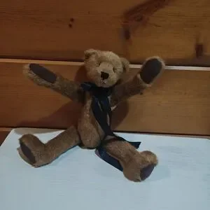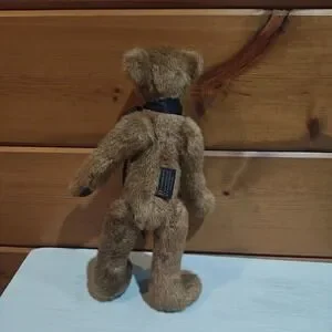 The Boyds Bears Lankey S. Woodsley Plush Artisan Series Out Of The Woods Originals is a vintage collectible plush bear from The Boyds Collection franchise. This 12-inch bear features a black eye color, brown bear color, and is made of wood material. With its unique design and fully jointed construction, this original piece from 1988-2002 is a highly sought-after collector's item for bear enthusiasts. Its retro charm and artisan quality make it a standout piece in any collection, showcasing the creativity and craftsmanship of Boyds Bears.