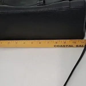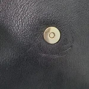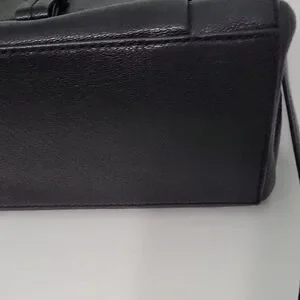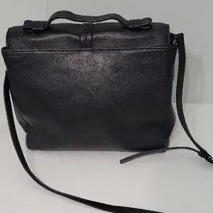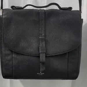 Chic black leather satchel by Kate Spade. Features a structured flap and top handle.