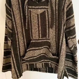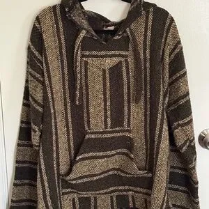 Baja Hoodie XL Green Beige Fleece Lined Pullover Boho Surf