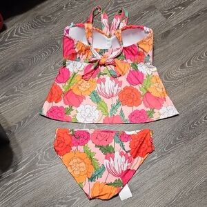Trina Turk Pink Orange Floral Tankini Bikini Set