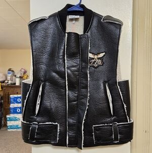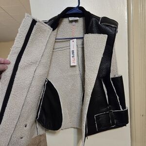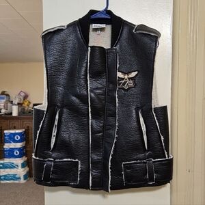 Brand new!! NWT The Greii boutique black vegan leather & sherpa vest size small