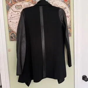 New without tags vegan leather sleeve ponte drape front jacket from Spanx. The perfect topper to just about any outfit!