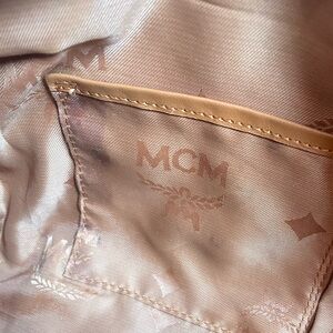 Stylish MCM shoulder bag with iconic monogram. Rich cognac color. Perfect for everyday elegance.