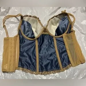 Victoria's Secret Gray and Gold Embroidered Lace corsé Bodysuit