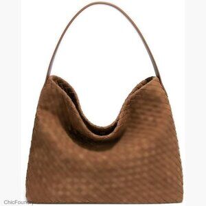 Woven Suede Hobo Bag Tote Shoulder Bag for Work Travel