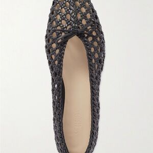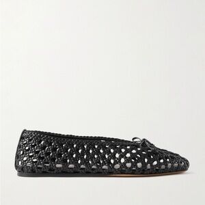Made in Italy. Elegant black woven flats with a delicate bow accent. Lightweight, breathable construction for comfortable all-day wear. Versatile design pairs effortlessly with casual and dress looks. Brand new, never worn comes with original box and dust bag.