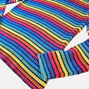 Rare vintage Tommy Hilfiger ribbed turtleneck sweater featuring bold rainbow stripe detailing on a black base. Heavyweight knit with a fitted silhouette β perfect for streetwear, retro styling, or statement looks.