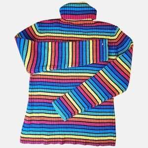 Vintage Tommy Hilfiger Ribbed Turtleneck Sweater Rainbow Stripe Black Size L π