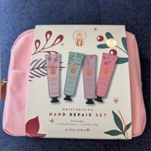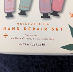 Experience luxurious hydration with the Moisturizing Hand Repair Set. This set includes four hand creams in delightful pink and green hues, perfect for nourishing your skin.