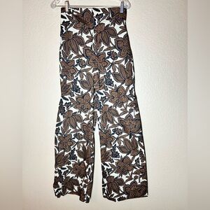 Zara Floral Wide Leg Pants Size S Boho Brown Print SIZE SMALL