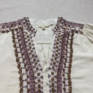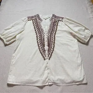 Anthropologie Forever That Girl Embroidered Peasant Blouse Swiss Dot Top 10