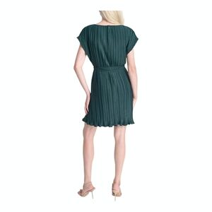 DKNY Women's Sunburst Pleated Fit & Flare Dress Dark Green Sizes 10,14 Authentic