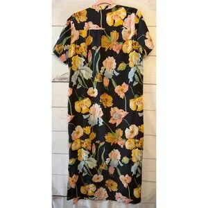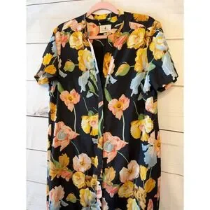 Tuckernuck Floral Maxi Dress Black Yellow Pink Short Sleeve Button Front M
