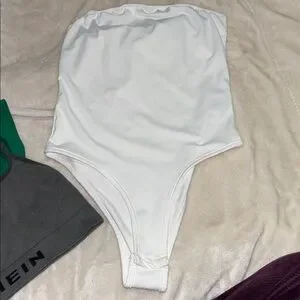White strapless high cut bodysuit, xs (new)