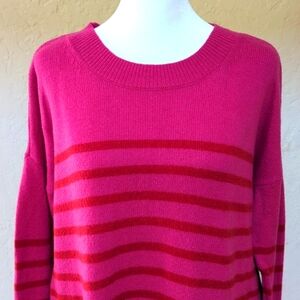 GAP Pink Stripe Crewneck Pullover Tunic Wool Sweater Size Medium