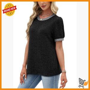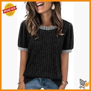 Short Sleeve Textured Tunic Top Business Casual Blouse Regular Fit