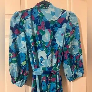 NWOT Blue Multicolor Floral Button Down 3/4 Puff Sleeve Easter Maxi Dress Small