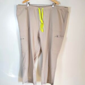 NWT Figs 6XLS Beige Pisco Basic Straight Leg Stretch Waist Drawstring Scrubs