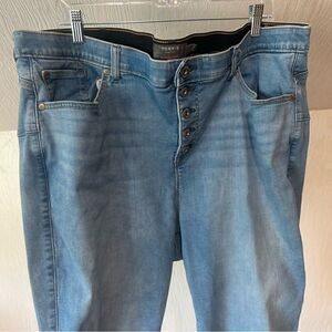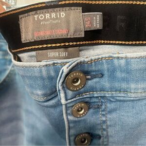 Torrid Light Wash 5 front Button Bombshell Skinny Jeans, size 24 SHORT