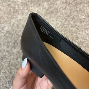 The Greyson flat has decorative leather strips on the toe for a tailored look.