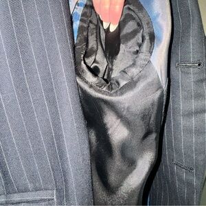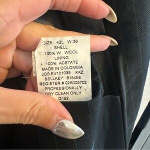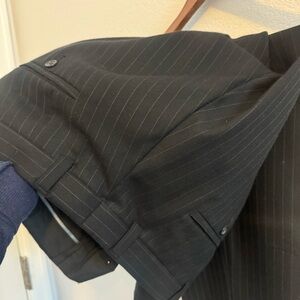 3 button jacket and pants with cuffs from early 2000s. It’s been cleaned and stored for years. Shows some scuff wear on one of the leg, please see all pics.