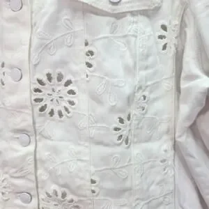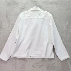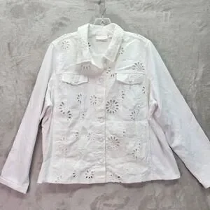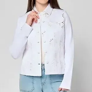 Belle by Kim Gravel Eyelet Jacket Womens XL White Flower Knit Sleeves Pockets