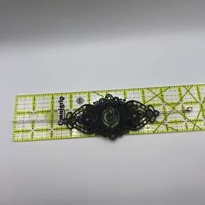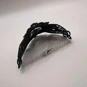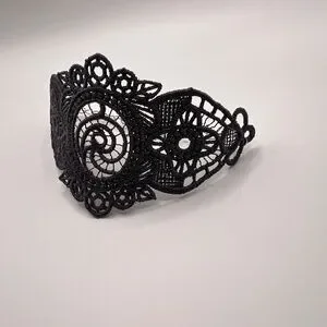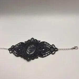 This lightweight lace bracelet is made entirely on my embroidery machine using a technique called free style lace. It is stitched out on a water soluble interfacing and once its complete I wash away the fabric leaving only the cotton thread to create this lace look. With the extender the bracelet is approx. 9 inches.