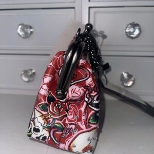 NWT Ed Hardy Floral Red Bedazzled Small bag/coin purse with Chain