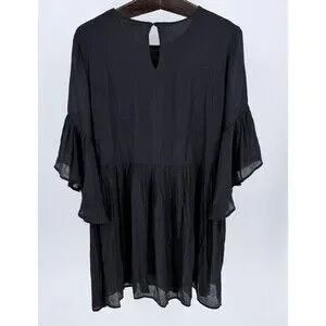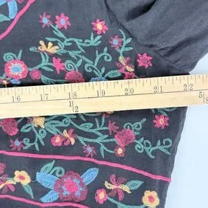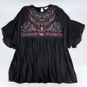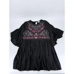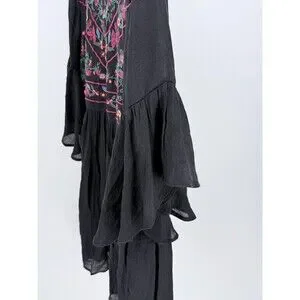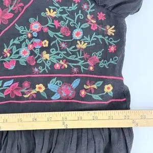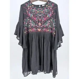 Boho Embroidered Babydoll Dress Black Cottagecore Flowy Fairy Style S