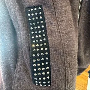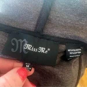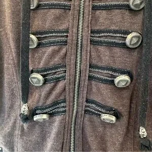 Y2K Miss Me Dark Plum Rhinestone Military Inspired Size M Zip Hoodie Bomber