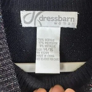 Keywords: Dressbarn Woman, Metallic Sweater, Sparkle Sweater, Knit Sweater, Mock Neck Sweater, Black Sweater, Purple Sweater, Plus Size Sweater, Vintage Sweater, Retro Sweater, Party Sweater, Holiday Sweater, Womens Sweater