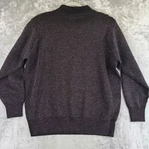 Eye-catching metallic sweater from Dressbarn Woman, distinguished by its sparkling threads woven throughout the knit. This sweater features a sophisticated mock neck design, adding a touch of elegance to its overall appearance. The dark base color is infused with subtle hues of purple and metallic accents, creating a shimmering effect. Its knit construction ensures a comfortable and flattering fit.