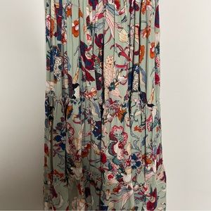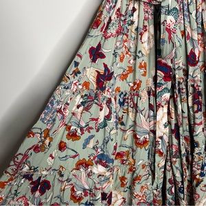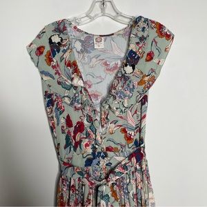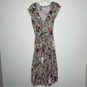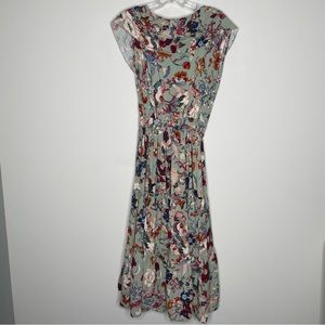 Elf Looking Back Ruffle Midi Dress Gray Floral Small S