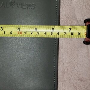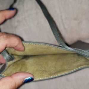 This is an open top grey crossbody bag. It has a long strap to wear crossbody style. The inside is open, no pockets or closure. It says Global Views on 1 side.Never used. See photos for measurements.