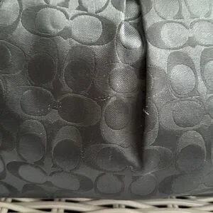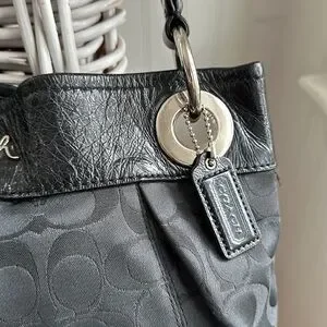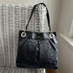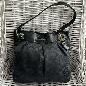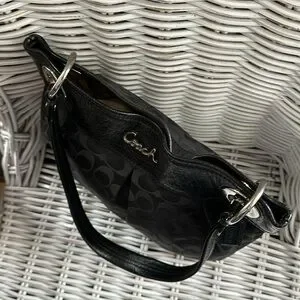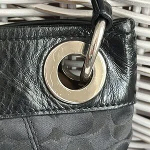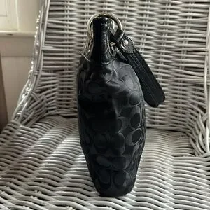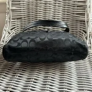 COACH Black Signature C Sateen Shoulder Bag with Creased Leather Trim
