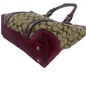 Coach Signature Canvas Tote Suede Trim Purple Interior Shoulder Bag