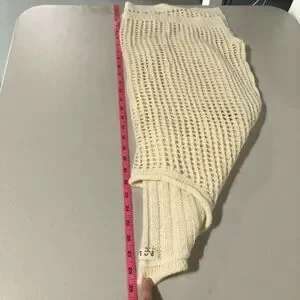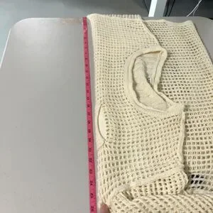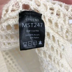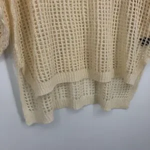 POL Sweater Womens Small Cream Open Knit Pullover Oversized Pocket MST247 Acrylic
