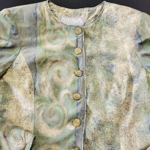 Dorothy Schoelen Platinum Jacket Small Silk Blend Vintage Abstract Art Blazer