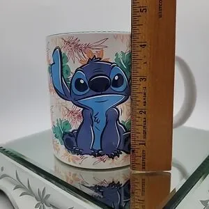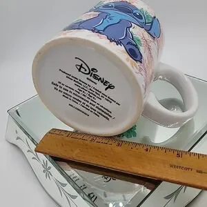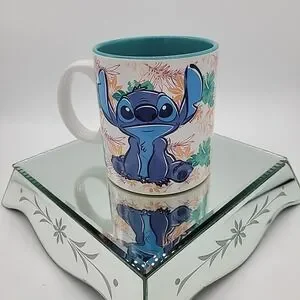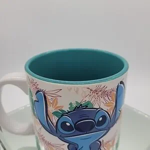 Disney Lilo & Stitch Tropical 20oz Ceramic Mug Large Floral White Teal Inside