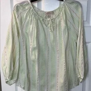 Philosophy Pale Green and Cream Striped Peasant Blouse