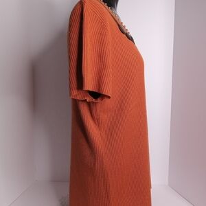 R.Q.T. SHORT SLEEVE PULLOVER SWEATER SIZE XL ORANGE WITH BRN.& TAN BEADING