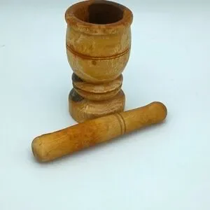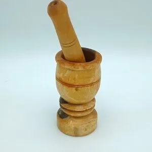 Beautiful turned wood mortar and pestle set. Vintage and used but still beautiful and with a lot of life left. 6 x 3