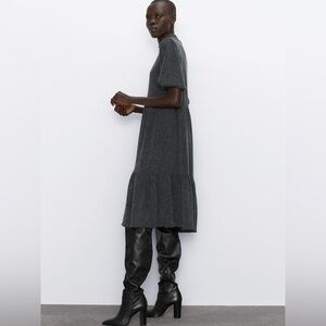 NWT ZARA Women’s Charcoal Gray Mock Neck Sweater Relaxed Midi Dress Small S
