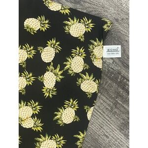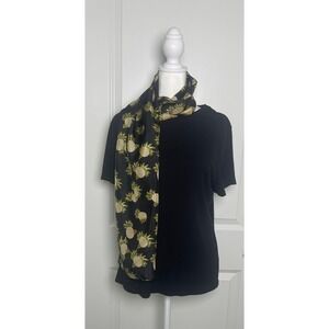 ECHO 100% Silk Pineapple Black Yellow Tropical Print Scarf Chic Vintage Inspired