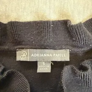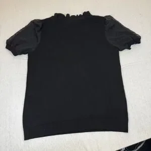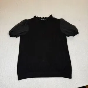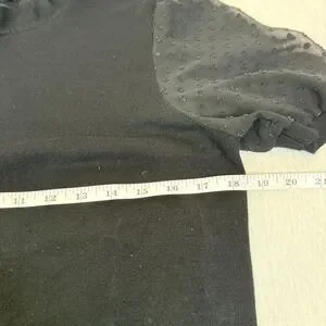 Adrianna Papell Black Mock Neck Puff Sleeve Sheer Dot Sweater Top Size S