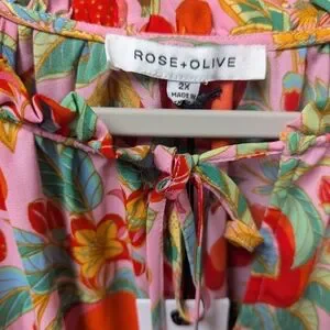 Rose & Olive Pink Tropical Fruit On Or Off-Shoulder Blouse 2X NWT