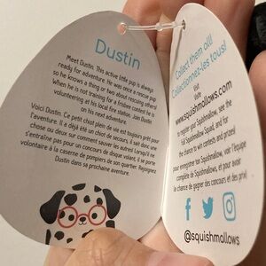 Squishmallows 2021 clip-on 3.5” Dalmatian with glasses Dustin come with bio tag