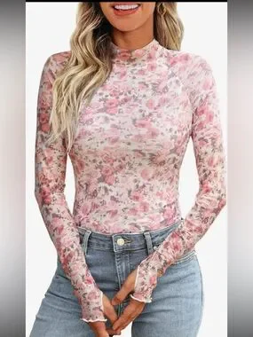 Elevate your style with this elegant pink floral mesh blouse. Perfect for any occasion, it offers a chic and sophisticated look.