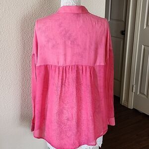 Free People Sheer Pink Tie Dye Button Down Top Size Small